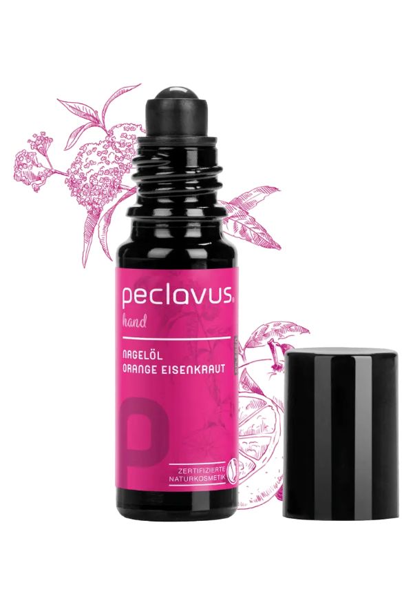 Das peclavus® hand Nagelöl Orange Eisenkraut pflegt die beanspruchte Nagelhaut nachhaltig und sorgt für strahlend glänzende Nägel. Die fruchtig-warmen Düfte der Orange und des Eisenkrauts verströmen die Kräfte eines lichtdurchfluteten Sommermorgens und bringen den gesamten Organismus in Schwung. Mildes Mandelöl, natürliches Bio-Jojobaöl und Vitamin E fördern den spür- und sichtbaren Pflegeeffekt dieser schnell einziehenden Nagelöl-Komposition.